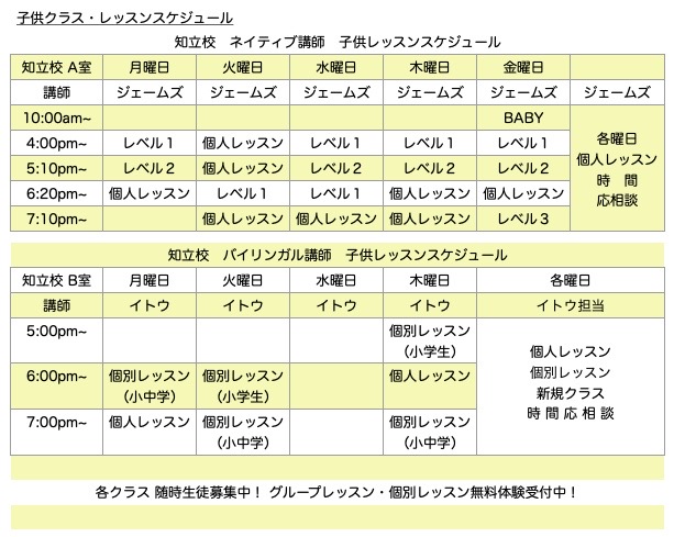 - 時間に制限がある為、書く練習や文法の説明が不足しがち