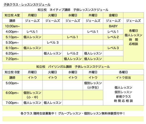 バイリンガル(日本人)講師による個別指導グループレッスン
